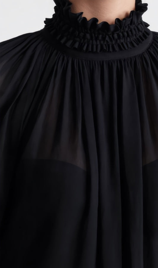 34% İndirimROSSTEF Dik Yaka Büzgülü Şifon Bluz - Oversize
