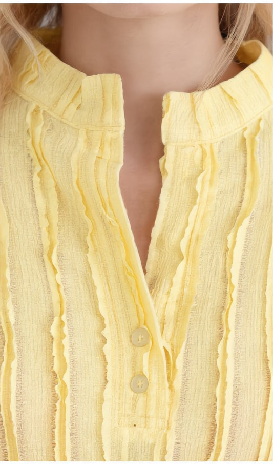 45% İndirimROSSTEF Dik Yaka Fırfır Detaylı Dokulu Bluz
