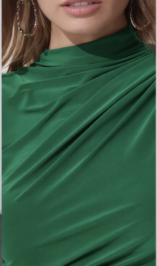 ROSSTEF Dik Yaka Drape Detaylı Kolsuz Bluz - Zümrüt Yeşili
