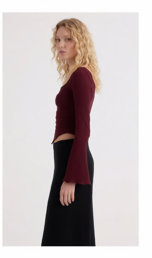 43% İndirimROSSTEF Kare Yaka Transparan Kol Büzgülü Bluz
