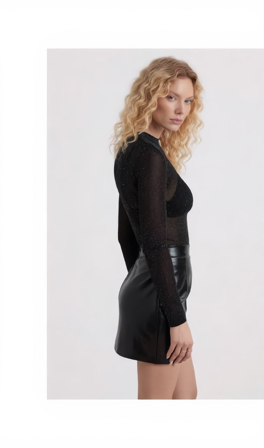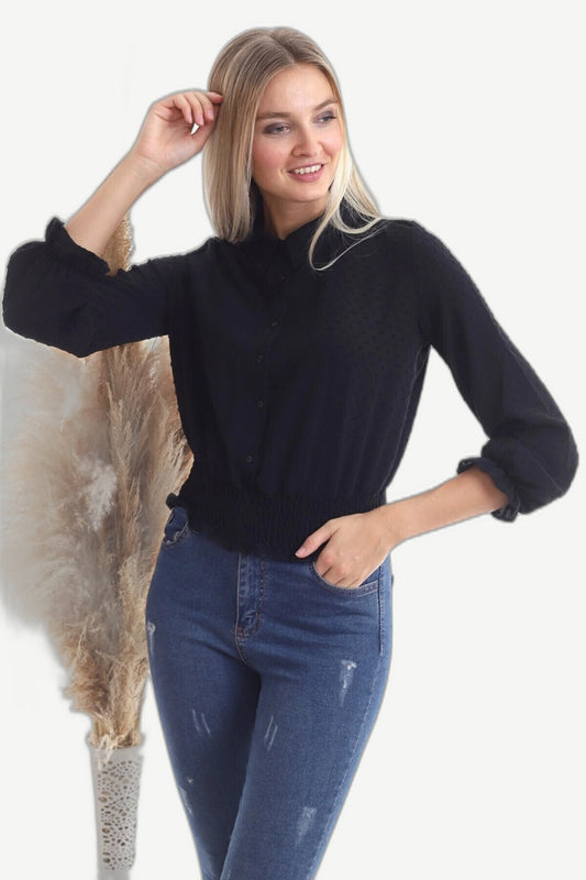 Rosstef Cool & Sexy Kadın Eteği Gipeli Siyah Gömlek