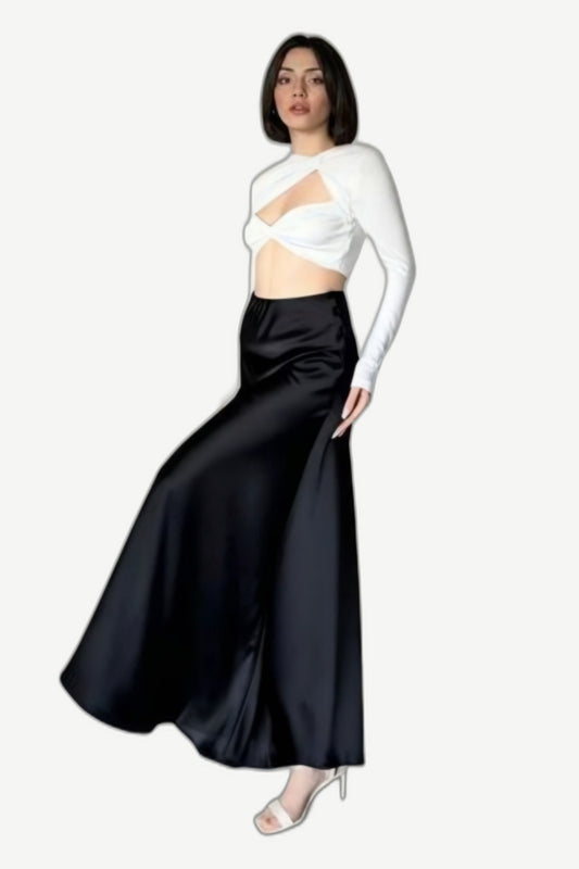 31% İndirimRosstef Midnight Satin Siyah Kloş Maxi Etek