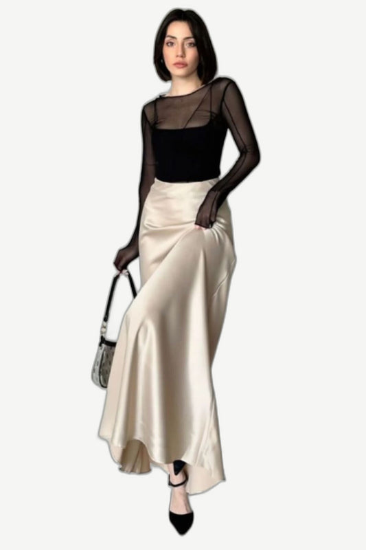 31% İndirimRosstef Ivory Cascade Saten Kloş Maxi Etek