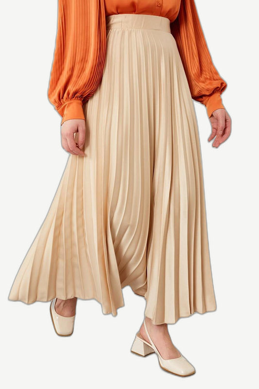 25% İndirimRosstef Champagne Glow Piliseli Saten Etek