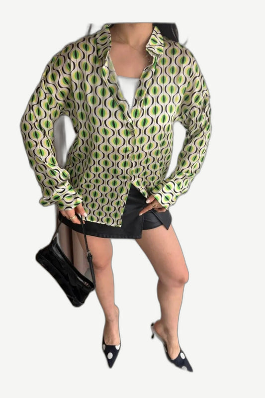 Rosstef Kadın Yeşil Desenli Saten Gömlek