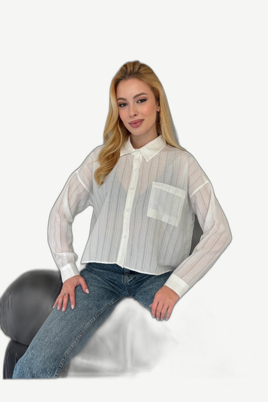 Rosstef Cool & Sexy Kadın Beyaz Çizgili Salaş Gömlek